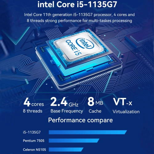 Intel Core i5 1135G7 (4 core 8 threads, 8M Cache, 4.20 GHz,TDP: 12W~28W)