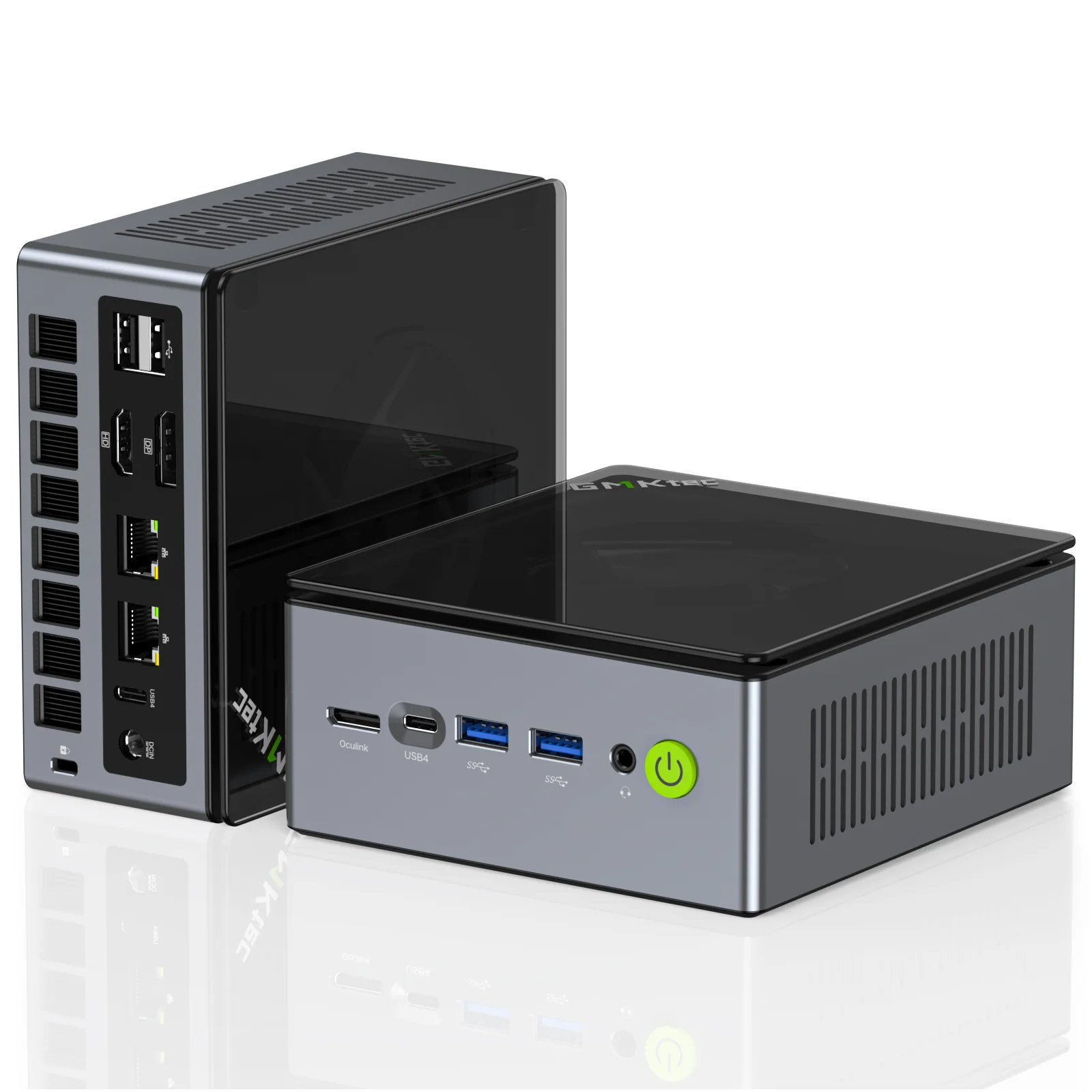 Ultra low temperature and ultra low fan noise mini pc with peak 70W TDP. Perfect for gaming enthusiasts. OcuLink port included. Built-in Mic Support (For AI Applications or Video Calling)