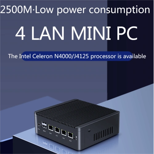 This 4 LAN Mini Computer can carry celeron J4125 N4000 processor, support SO-DIMM DDR4 2666mhz, MAX 8GB, carrying 4-core 4-thread processor and DDR4 high-frequency memory, to ensure that the internet will not be stuck, not dropped, support multiple devices to connect to meet more internet needs. Select high-quality industrial solid-state Hard Disk, high and low temperature resistance, low power consumption high-speed reading more stable. The Mini PC has a 2.5 gigabit internet port and can support broadband access for multiple carriers, making the network faster.