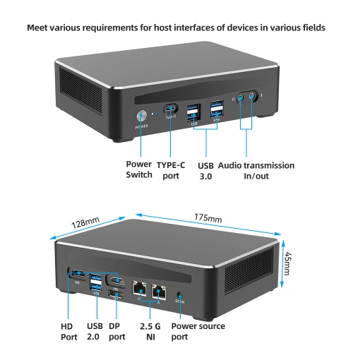 The mini PC has a compact size that makes it suitable for a desk with limited space, an entertainment area or a home theater. Despite its small size, it offers a wealth of connectivity options, including multiple USB ports, HDMI and DisplayPort ports, Ethernet ports, and audio jacks to meet the connectivity needs of a variety of external devices.
